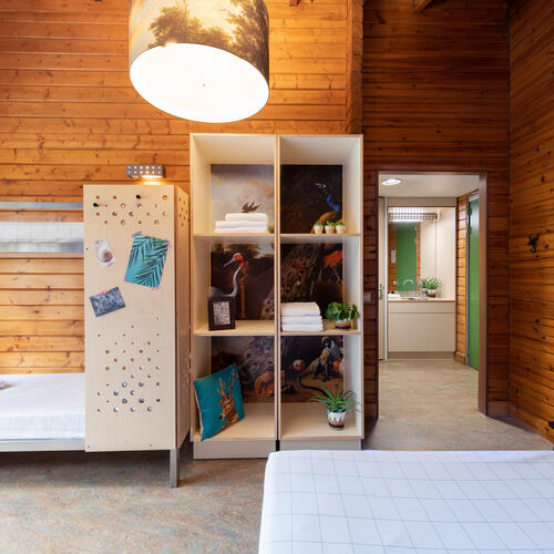 In the middle of nowhere looms a beautifully renovated Norwegian hunting lodge, you have arrived at Stayokay Gorssel. You will find an atmospheric restaurant, a cosy sitting area by the fireplace, a nice living room with games and a lovely terrace in the large garden. All in line with the characteristic Norse style. You spend the night in the family or private rooms (always with private bathroom) or in the Wikkelhouses on the grounds of the hunting lodge.